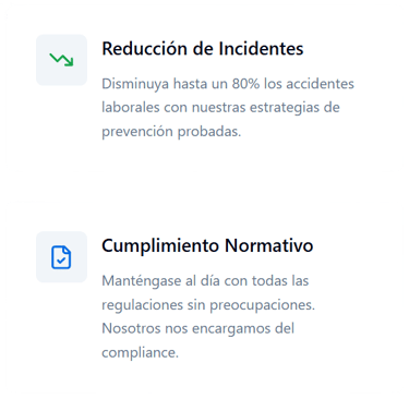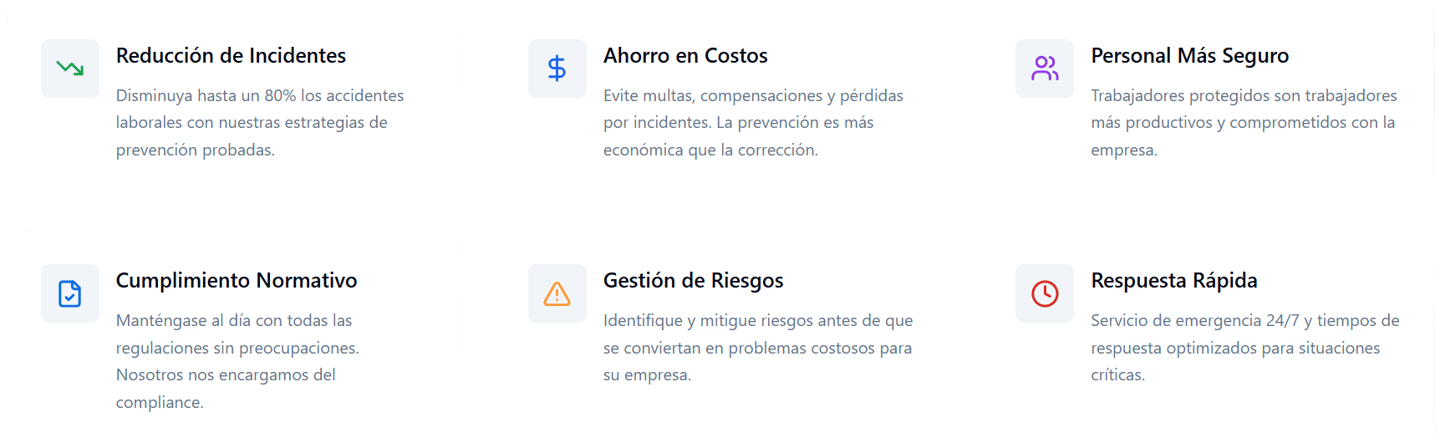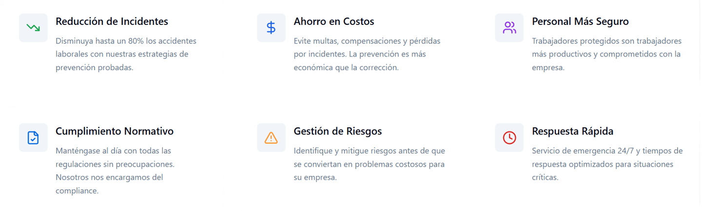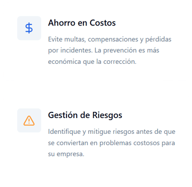 Invierta en prevención de riesgos y obtenga beneficios tangibles que impactarán positivamente en su empresa, personal y resultados financieros.